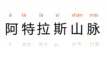⒈ 非洲西北部山脉,属于阿尔卑斯山系的一部分。长约1800千米。大部分海拔1500阿特拉斯山脉2500米,最高峰图卜卡勒山海拔4165米。水力资源丰富。矿藏有磷灰石、铁等。盛产阿尔法草,北坡特产栓皮栎。