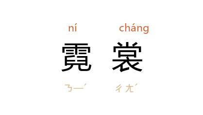 英语Nichang, abbr. for the Tang Dynasty song /Raiment of Rainbows and Feathers/ 霓裳羽衣曲[Ni2 chang2 yu3 yi1 qu1] or 霓裳羽衣舞[Ni2 chang2 yu3 yi1 wu3], nichang, rainbow colored clothes worn by the Eight Immortals 八仙[Ba1 xian1]