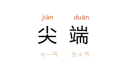 ⒈ 尖锐东西的末梢、顶点。引申为高级的、特出的。亦指高级的、特出的事物。