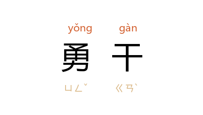 引《宋书·孝义传·卜天与》:“父名 祖,有勇干, 徐赤特 为 餘杭 令, 祖 依随之。”宋 司马光 《涑水记闻》卷十二:“寳元 初, 夏州 赵元昊 始絶朝贡。朝廷选班直诸校有勇干者,除前班官,任以边事。”