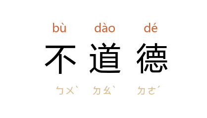 ⒈ 不符合道德标准。如:这个人乱折公园里的花木,实在不道德。