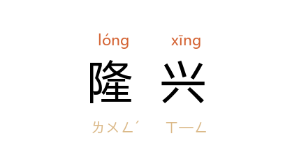 引《后汉书·卷一五·来歙传》:「今陛下圣德隆兴,臣愿得奉威命。」《文选·韦曜·博弈论》:「故能隆兴周道,垂名亿载。」
