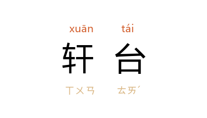 引唐 许敬宗 《奉和执契静三边应诏》:“星次絶 轩臺,风衢乖 禹 服。”唐 李商隐 《复京》诗:“虏骑胡兵一战摧,万灵回首贺 轩臺。”叶葱奇 疏注:“案‘轩臺’,借指朝廷。”清 顾炎武 《三月十九日有事于欑宫时闻缅国之报》诗:“此日空阶荐一觴, 轩臺 云气久芒芒。”王蘧常 汇注:“轩臺 喻 崇禎 所葬地,即所谓‘欑宫’者。”