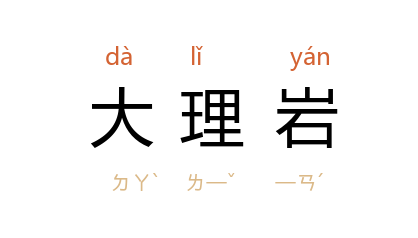 ⒈ 俗称“大理石”。由石灰岩或白云岩经变质作用重结晶而形成的一种变质岩。因云南大理所产最有名,故名。一般为白色,若含不同杂质,则夹有条纹或呈不同颜色。主要矿物成分为方解石,故遇盐酸有气泡产生。易加工,常用作雕刻、建筑材料。
