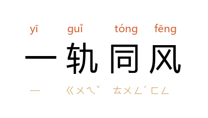 ⒈ 后因以“一轨同风”比喻国家统一,政令划一。后因以“一轨同风”比喻国家统一,政令划一。