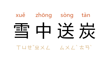 英语lit. to send charcoal in snowy weather (idiom), fig. to provide help in sb's hour of need