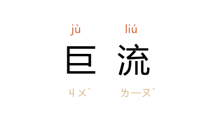 ⒈ 巨大的水流。常用以比喻巨大的队伍或强大的力量。