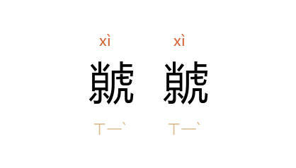 ⒈ 恐惧的样子。《易经·震卦》:「震来虩虩,笑言哑哑。」