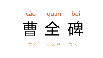 ⒈ 全称《郃阳令曹全碑》。 东汉 碑刻。隶书。 灵帝 中平 二年(公元185年)立。记 曹全 爵里行谊及为 西域 戊部司马时与 疏勒 交战事。碑阴 岐茂 等题名,分书。 明 万历 初在 陕西省 郃阳县 莘里村 出土,不久即断裂。今存 西安市 碑林。书法秀丽而有骨力,为 汉 隶中著名作品之一。参阅 清 顾炎武 《金石文字记·郃阳令曹全碑》。