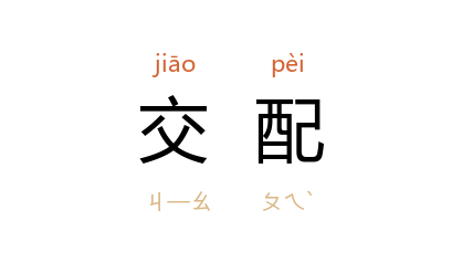⒈ 动、植物雌雄两性交合或行人工受精,称为「交配」。