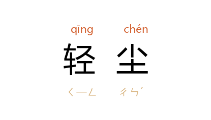 引晋 木华 《海赋》:“若乃霾曀潜销,莫振莫竦。轻尘不飞,纤萝不动。”唐 温庭筠 《题李处士幽居》诗:“水玉簪头戴角巾,瑶琴寂歷拂轻尘。”《花月痕》第三三回:“綉幰珠帘都不下,轻尘一任上乌云。”