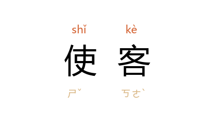 引《史记·樊郦滕灌列传》:“为 沛 廏司御,每送使客还,过 沛 泗上亭,与 高祖 语,未尝不移日也。”唐 杜甫 《秦州杂诗》之十:“羌 童看 渭水,使客向 河源。”宋 曾巩 《齐州二堂记》:“齐 滨 濼 水,而初无使客之馆;使客至,则常发民调材木为舍以寓,去则彻之,既费且陋。”清 周亮工 《书影》卷二:“积年餘,有 高丽 使客三四人,旁睨良久,问:‘此铁价几何?’”