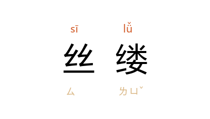 引《墨子·尚同上》:“譬若丝缕之有纪,罔罟之有纲。”《西京杂记》卷一:“中设木画屏风,文如蜘蛛丝缕。”《南史·张绪传》:“刘悛之 为 益州,献 蜀 柳数株,枝条甚长,状若丝缕。”