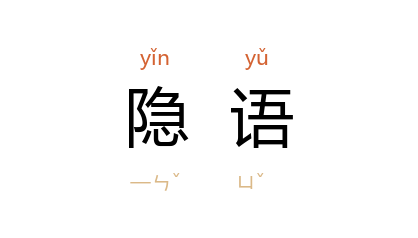 ⒉ 指不直说本意而借别的词语来暗示的话。类似今之谜语。古亦称“廋辞”。