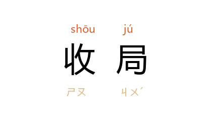 引《红楼梦》第一一〇回:“邢夫人 一听 贾政 的话,正合着将来家计艰难的心,巴不得留一点子作个收局。”鲁迅 《华盖集续编的续编·<阿Q正传>的成因》:“似乎作者对于 阿Q 的收局太匆促了。”