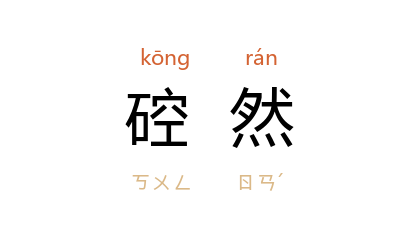 引唐 柳宗元 《霹雳琴赞引》:“﹝枯桐﹞一夕暴震,为火之焚,至旦乃已。其餘硿然倒卧道中。”明 徐弘祖 《徐霞客游记·粤西游日记一》:“但见迴澜素波,触石奋出,硿然送声至座。”明 徐弘祖 《徐霞客游记·滇游日记十》:“余乃以石块掷之,久而硿然。”