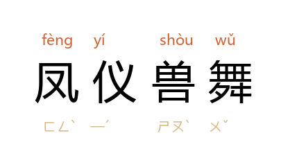 ⒈ 后用“凤仪兽舞”表示圣贤教化的功效极大,能使神异的鸟兽奋然起舞。