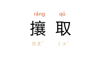 引《新唐书·宦者传下·杨复恭》:“帝崩,定策立 昭宗,赐铁券,加金吾上将军,稍攘取朝政。”宋 郭彖 《睽车志》卷一:“成中郎 傅霖,淳熙 庚子,任 临安 监,尝建请於北关创立新仓,攘取民居八十餘家。”清 阮葵生 《茶馀客话》卷二:“升菴 挟父势,屡至阁繙书,攘取甚多。”瞿秋白 《国民会议运动与联合战线》:“军阀帝国主义的反动结合还没有巩固,至少也还不能立刻攘取中央政权,完全恢复他们的统治。”