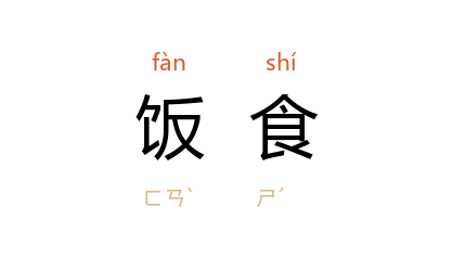 ⒈ 吃饭。饮食,指饭量。煮熟的谷类食物。饭和菜。借指工作,活计。