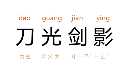 例如:「这一场帮派械斗,只见刀光剑影,甚是吓人。」