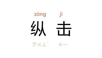引《隋书·史祥传》:“祥 至 须水,两军相对, 公理 未成列, 祥 纵击,大破之。”唐 段成式 《剑侠传·郭伦观灯》:“挥臂纵击,如搏婴儿。”《清史稿·饶余敏郡王阿巴泰传》:“二更,行礮发不絶声, 锦州 人闻之,谓 大凌河 兵逸,争出应之,师纵击,斩馘甚众。”