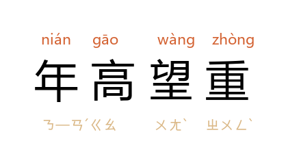 ⒈ 年纪大,名望高。