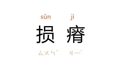 引《管子·八观》:“稼亡三之一,而非有故盖积也,则道有损瘠矣。”尹知章 注:“道行之人,有毁损羸瘠者也。”唐 苏颋 《处分朝集使敕》:“至使钱穀不入,杼轴其空,损瘠相仍,流庸莫返。”宋 曾巩 《救灾议》:“古者二十七年耕,有九年之畜足,以备水旱之灾,然后谓之王政之成。 唐 水 汤 旱,而民无损瘠者,以是故也。”