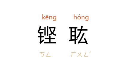 ⒈ 亦作“鏗鈜”。象声词。形容声音洪亮。