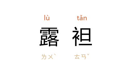 元·胡三省·注:「露袒,如人之肢体上下无衣裳以覆蔽,裸露肉袒者也。」