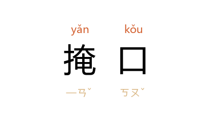 ⒈ 以手捂住嘴巴。参见“掩口而笑”、“掩口胡卢”。