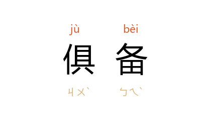 ⒈ 完备、样样齐备。清·李渔也作「具备」。