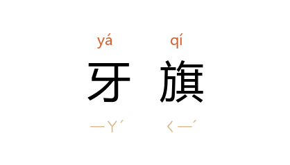 ⒈ 天子或将军所立于军营前的大旗,因竿上以象牙为饰,故称为「牙旗」。