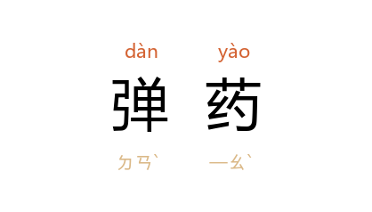 ⒈ 枪弹、炮弹、炸弹、火药等具有杀伤力,或其他特殊作用的爆炸物的统称。