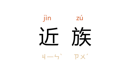引《红楼梦》第四七回:“外面大厅上, 薛蟠、贾珍、贾璉、贾蓉 并几个近族的都来了。”清 昭槤 《啸亭杂录·西域用兵始末》:“达瓦齐 於 达尔扎 为近族,贵而无位。”姚雪垠 《长夜》二一:“他只让几家近族跟自己的佃户躲进宅子里。”