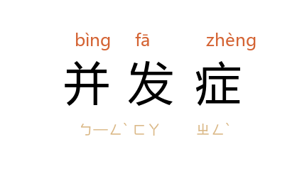 ⒈ 在主要疾病进程中发生的并发疾病或情况,或是由主要疾病所造成或是由其他独立原因所引起病症。