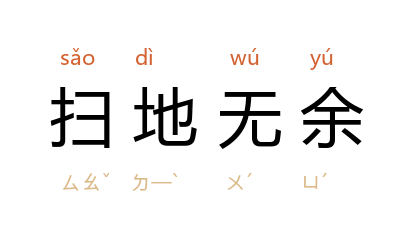 亦作“扫地无遗”。 《晋书·惠帝纪》:“帝令 方(张方 )具车载宫人寳物…… 魏 晋 已来之积扫地无遗矣。”