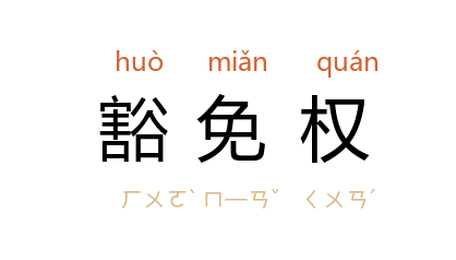 ⒈ 外交官于驻在国所享有的某种程度的特权。如不受地主国司法、行政机关管辖,出入境不受检查等。若外交官职务终止,则豁免权于其离境时停止。