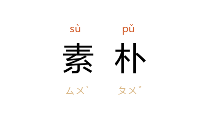 ⒈ 质朴无华。素,生丝;朴,原始木材。参见“素朴”。