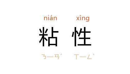 ⒊ 粘滞性;特指流体或半流体的物理性质,它可使流体或半流体发展或保持一定量的与流速有关的切应力,而对流动产生连续的阻力。