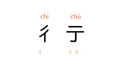 ⒈ 彳,左步。亍,右步。彳亍指缓步慢行。