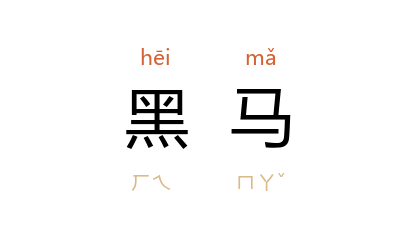 例如:「他在初赛时成绩平平,没想到决赛竟 夺得冠军,成了此次竞赛的黑马。」