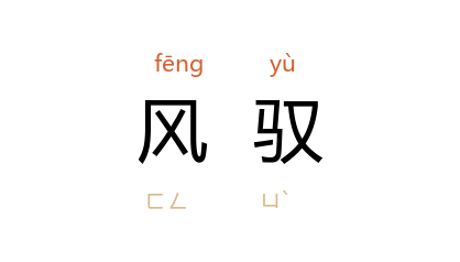 引唐 吕岩 《雨中花》词:“风驭云軿不散,碧桃紫柰常新。”宋 苏轼 《用前韵答西掖诸公见和》:“风驭宾天云雨隔,孤臣忍泪肝肠痛。”赵次公 注:“《列子》:‘御风而行。’又所谓风马云车也。”《宋史·乐志七》:“风驭云旗,聿来歆止。”