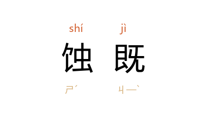 引语出《春秋·桓公三年》:“秋,七月,壬辰,朔,日有食之,既。”杜预 注:“既,尽也。”孔颖达 疏:“食既者,谓日光尽也。”唐 刘禹锡 《砥石赋》:“如景昏而蚀既兮,与肌漆而为癘。”