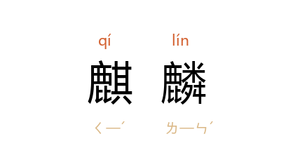 ⒈ 古代传说中的一种动物。形状像鹿,头上有角,全身有鳞甲,尾像牛尾。古人以为仁兽、瑞兽,拿它象征祥瑞。