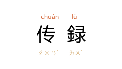 引宋 欧阳修 《归田录》卷一:“﹝ 杨大年 作文﹞每盈一幅,则命门人传録,门人疲於应命,顷刻之际,成数千言。”元 黄溍 《日损斋笔记·杂辩》:“一时传録者以‘树’字与 英宗 庙讳同音,故易以‘暮’字。”明 胡应麟 《少室山房笔丛·经籍会通一》:“近年惟 直斋 陈氏 书最多,盖尝仕於 莆,传録 夹漈 郑氏、方氏、林氏、吴氏 旧书,至五万一千一百八十餘卷。”
