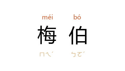 ⒈ 人名。传说为 商纣 臣,因多次劝谏,被 纣王 杀害。参阅《淮南子·俶真训》“葅 梅伯 之骸” 高诱 注。