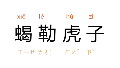 引《当代》1981年第3期:“党风有所好转,但群众来信批评他们拍的都是些小‘苍蝇’,说他们不敢碰‘蝎勒虎子’。”