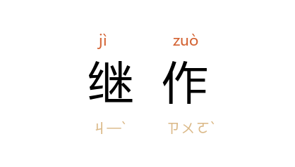 引南朝 梁 刘勰 《文心雕龙·铭箴》:“凡斯继作,鲜有克衷。”章炳麟 《辨诗》:“夫宫室新成则有发,丧纪祖载则有遣,告祀鬼神则有造,原本山川则有説,斯皆古之德音,后生莫有继作,其题号亦因不著。”