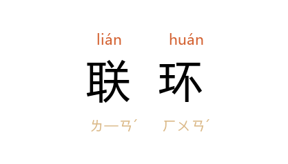引宋 王琪 《秋日白鹭亭》诗:“千峰若联环,翠色不可解。”清 魏源 《圣武记》卷十四:“联环舟:舟分二截,联以鉤环。”李大钊 《唯物史观在现代史学上的价值》:“感情的意识与满足感情需要的方法施用,只是在同联环中的不同步数罢了。”