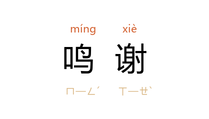 例如:「鸣谢当选」、「鸣谢赐票」。